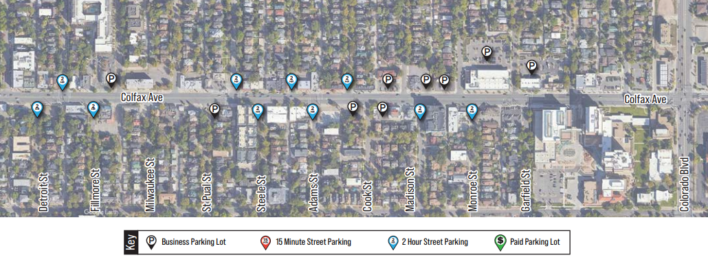 “The parking map being created for East Colfax is, and will continue to be, a work in progress as implementation of the rapid transit line moves and shifts along the corridor,” Kuhn says. “We do expect to be making some adjustments, so we encourage people visiting the corridor to visit the website and check the map before they go for updated versions.”