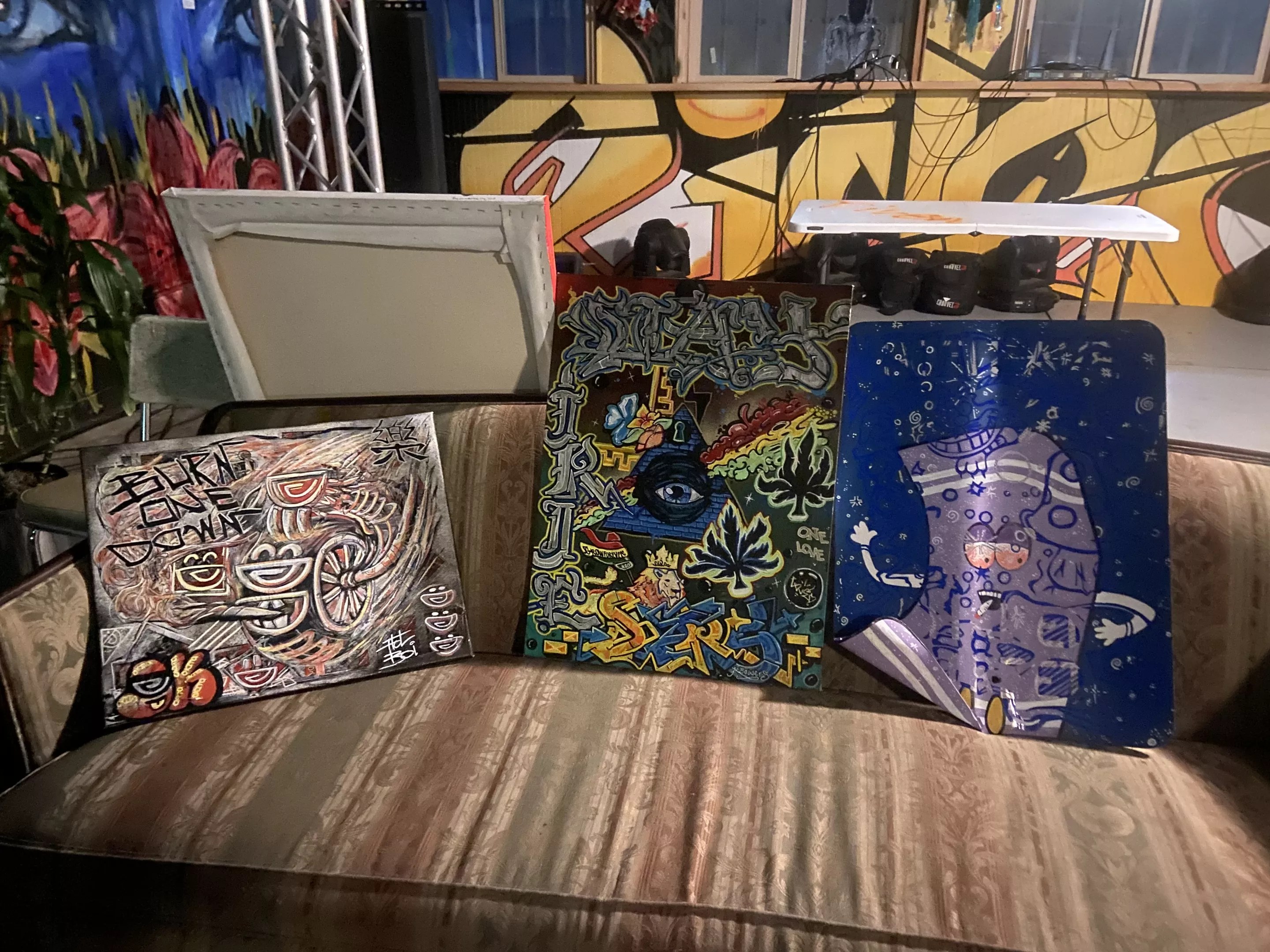 For the inaugural show, River recruited such local artists as Matador, Patrick McGregor, Rob Dog Exclusive, Mythik, Jbird, Zeek Vasquez, Omega Marcusus, Fractal Dabber, 2Tongues and many more; some of CdeBaca’s work will also be displayed. Pieces include homages to smoking, acrylic paintings of Scooby-Doo and Clifford the Big Red Dog, and a hilarious piece of South Park‘s Towelie by Matador. Guests will be able to purchases pieces from the participating artists.
