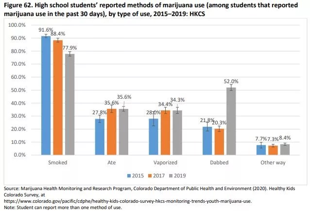 In analyzing use of cannabis by minors, the report cited data from the state Department of Public Health and Environment’s Healthy Kids Colorado Survey in 2019.