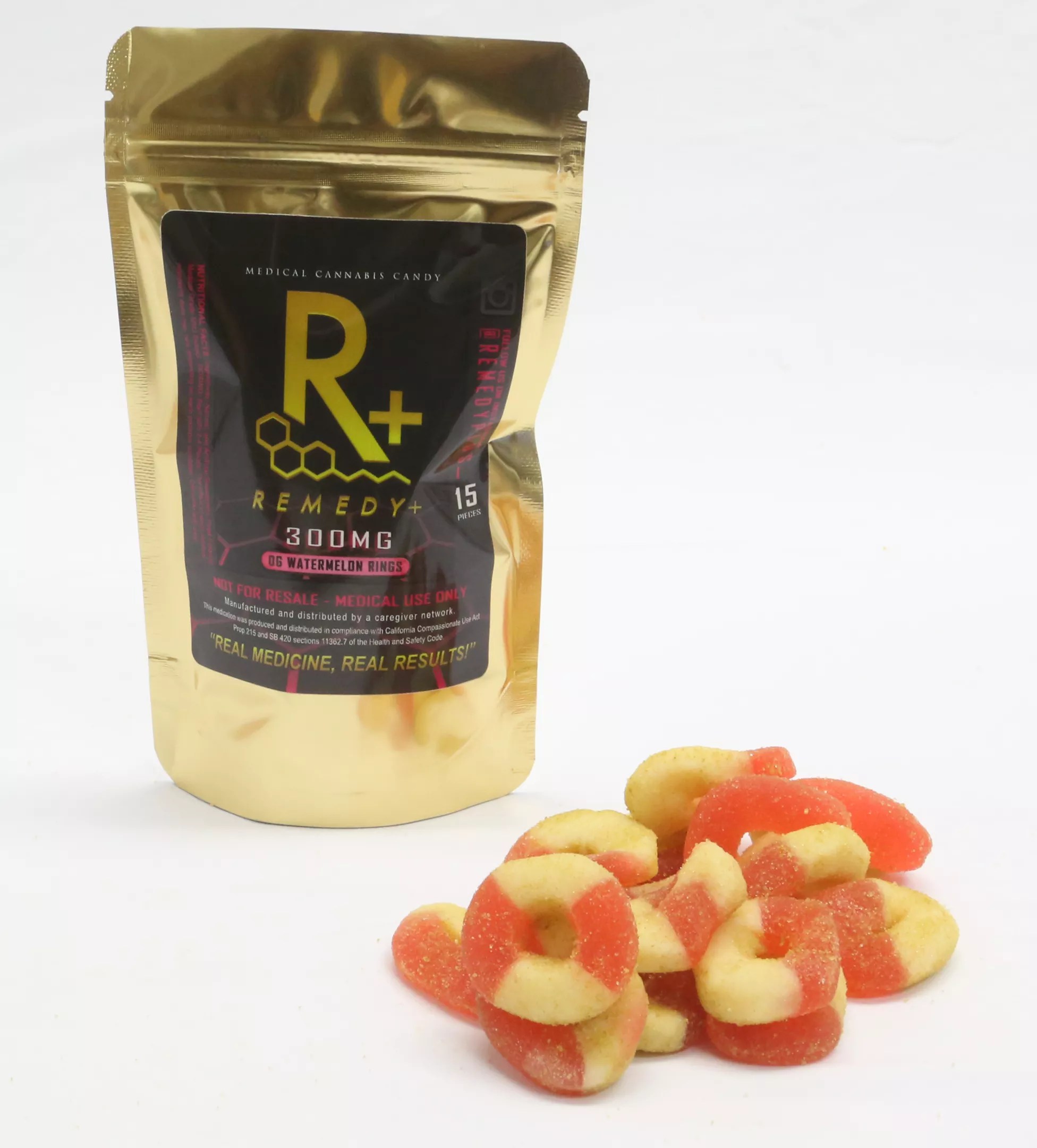 Among plenty of other medical products, many of which contain more than 300 milligrams, Remedy Plus creates watermelon rings that just remind us of childhood. Only better.