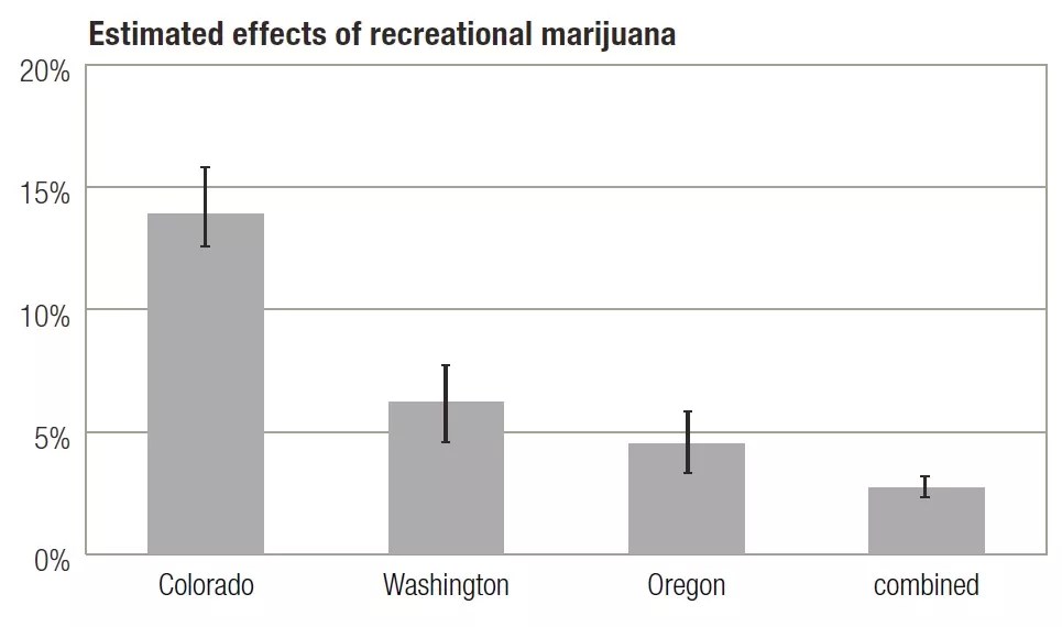 The results: “Pre-recreational marijuana legalization annual changes in motor vehicle crash fatality rates for Washington and Colorado were similar to those for the control states. Post-recreational marijuana legalization changes in motor vehicle crash fatality rates for Washington and Colorado also did not significantly differ from those for the control states.”