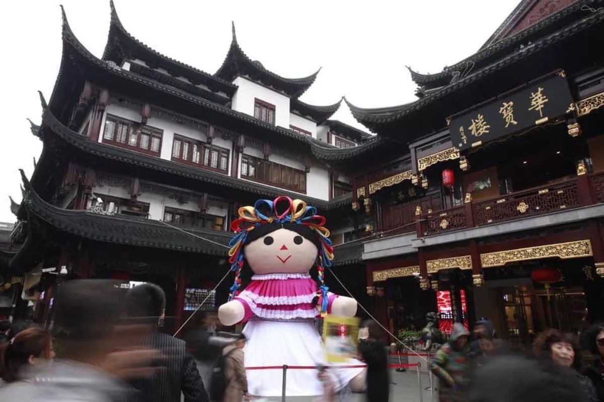 The Lele doll sitting at Yu Yuan Garden in Shanghai, China in 2021.
