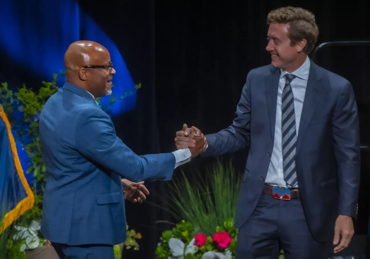 This morning, July 17, Michael Johnston was sworn in as the 46th mayor of Denver, Colorado, by Judge Nicole Rodarte, presiding judge of Denver County Court, at the Ellie Caulkins Opera House. Six new members of Denver City Council were also sworn in.