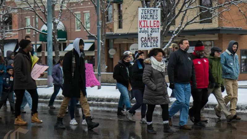 CSU Police Department spokesperson Dell Rae Ciaravola’s take, delivered by email, is more detailed. In her words, “All body camera footage of the interaction with Jeremy was redacted and released to the public during a press conference, along with the DA’s finding. CSUPD Officer Aron was not present during the incident; she arrived at the scene some time after the attempts to de-escalate the incident and weapons were fired. She was not present for any interactions between Holmes and the officers. Officer Aron was among officers from both departments who responded after weapons were fired.”