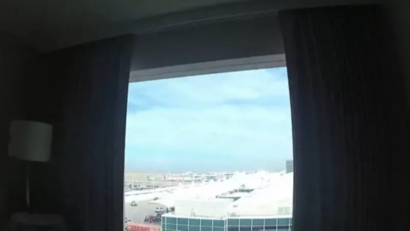 The view from Collins’s room at the DIA Westin, as seen in a police body-camera screen capture.