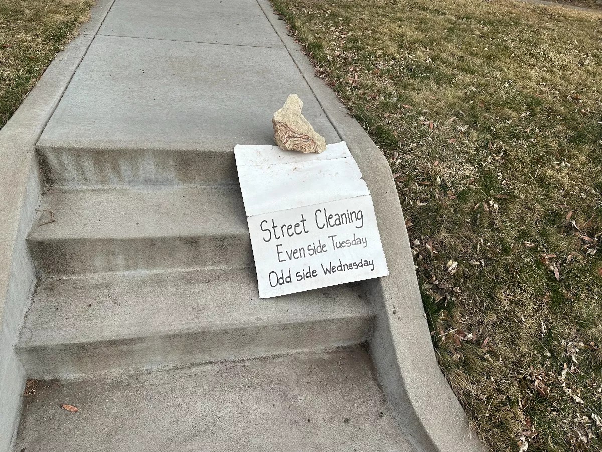Posted sweeping is Tuesday through Friday. Good neighbors will put up makeshift signs and post on social media to remind people as well.