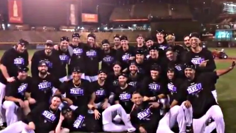 The team celebrating its playoffs berth, as seen in a screen capture from a video shared on the Rockies’ Twitter page.