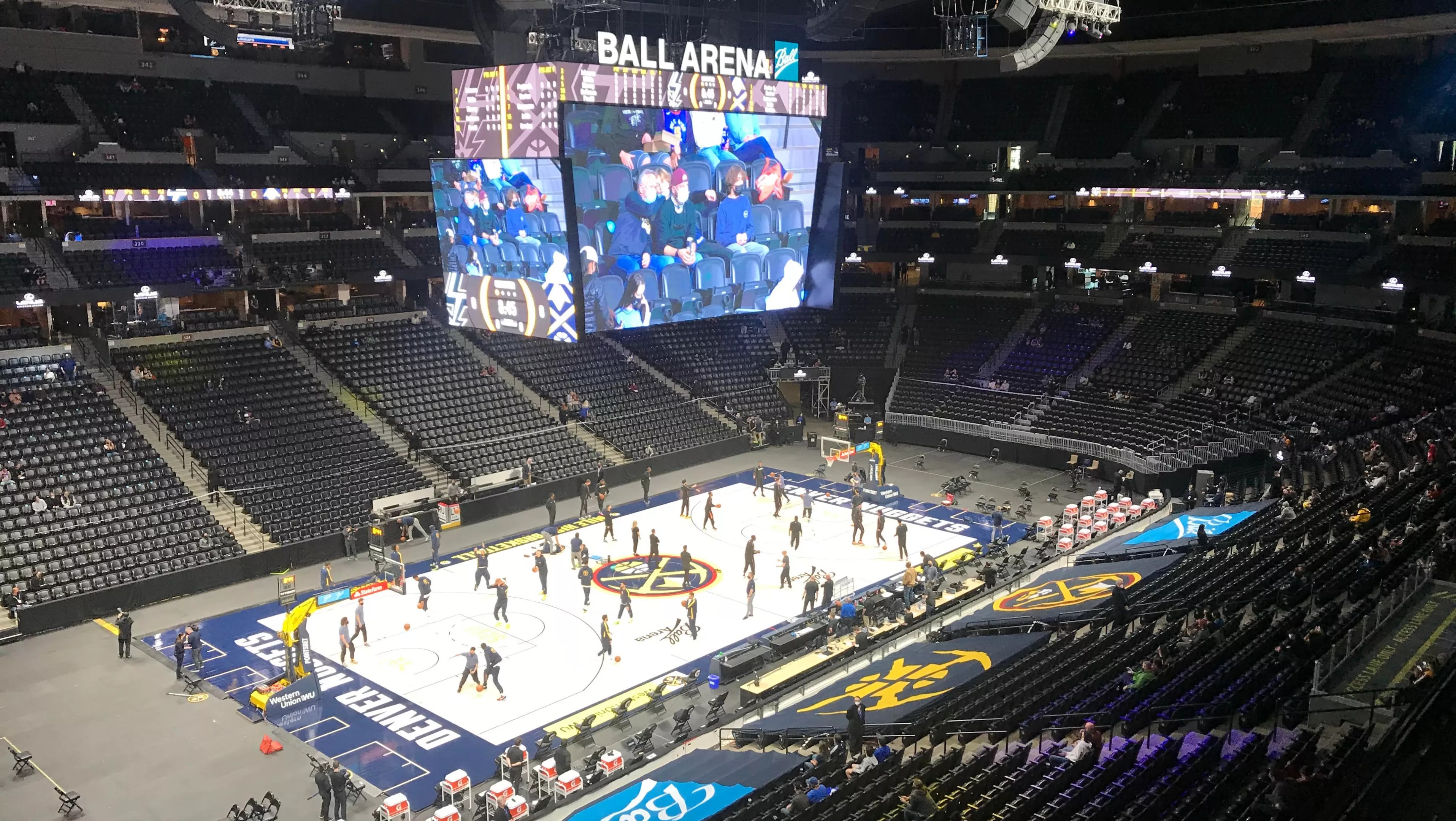 Otherwise, the Ball Arena staff went the extra mile to keep the venue as clean as possible. Lora visited the bathroom twice, and each time, an employee was on hand to sanitize immediately afterward. At halftime, another crew member sanitized the rims and backboards on the court – which at least gave attendees something to watch. Instead of highlighting dancers, games between junior basketballers, special guest performers or the like, the gap between the second and third quarters was filled by video of DJ Paws spinning vinyl and random folks dancing near their seats, plus aggressive advertising for PointsBet, the Nuggets’ gambling partner.