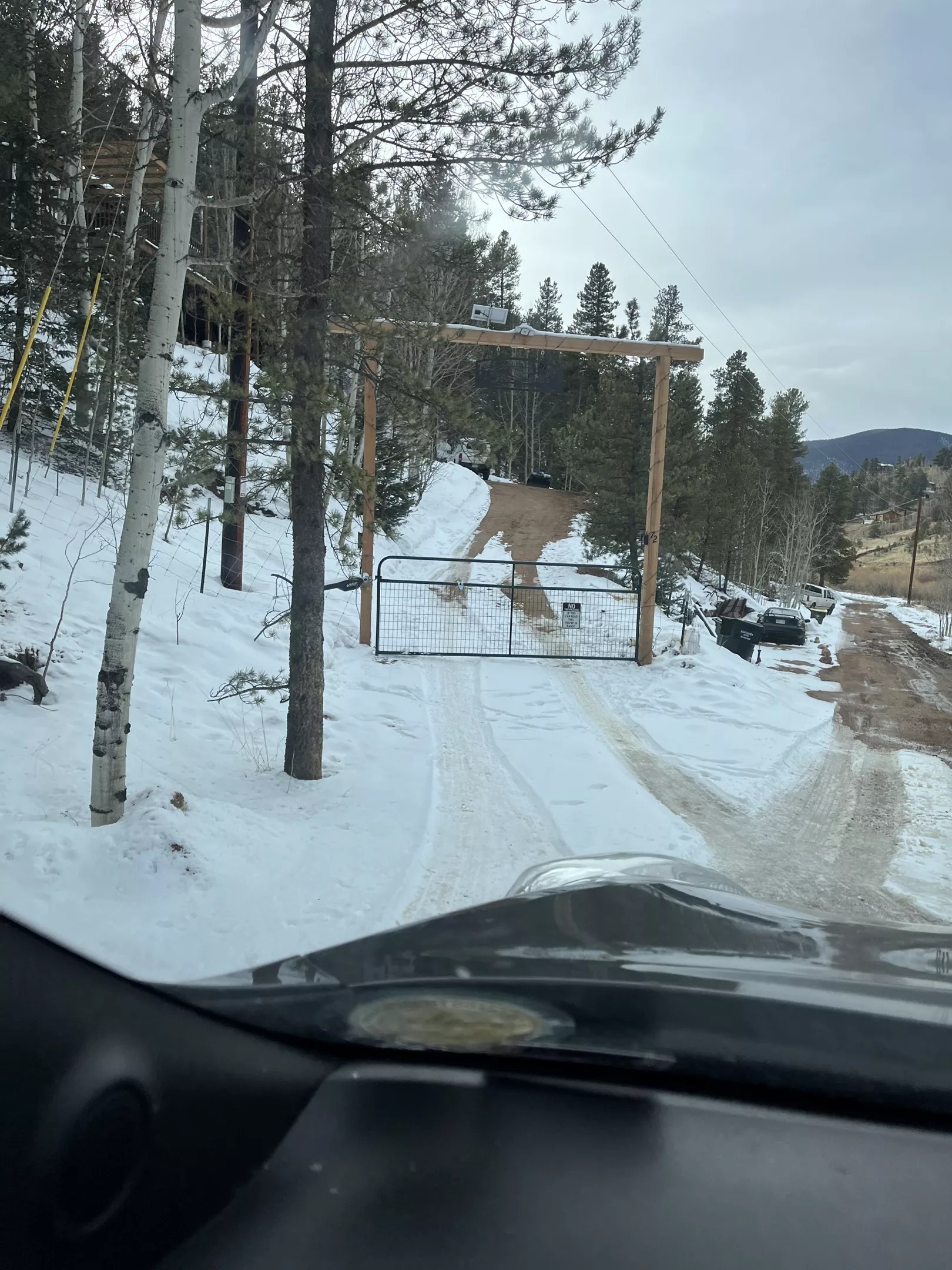 The road on the right is Stucke Road, where students got stuck that day. On the left is the entrance to Jon Spencer’s private property.