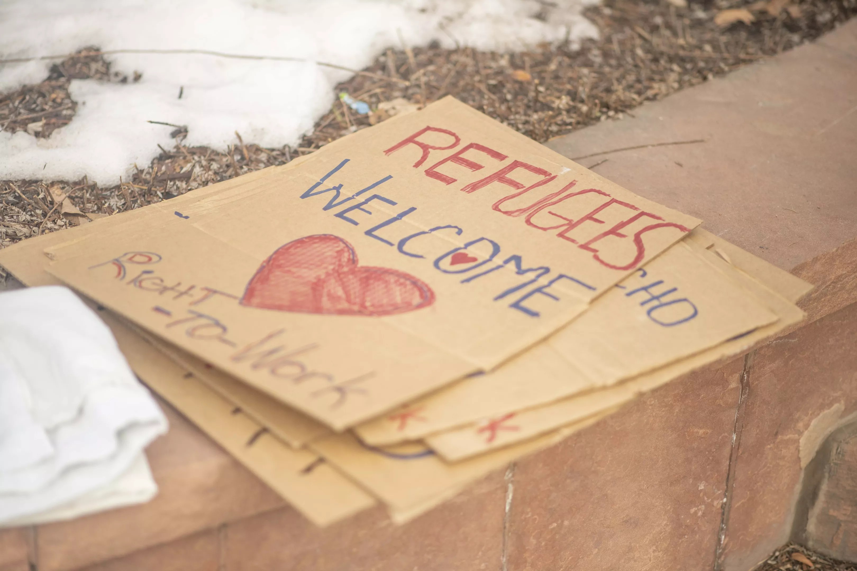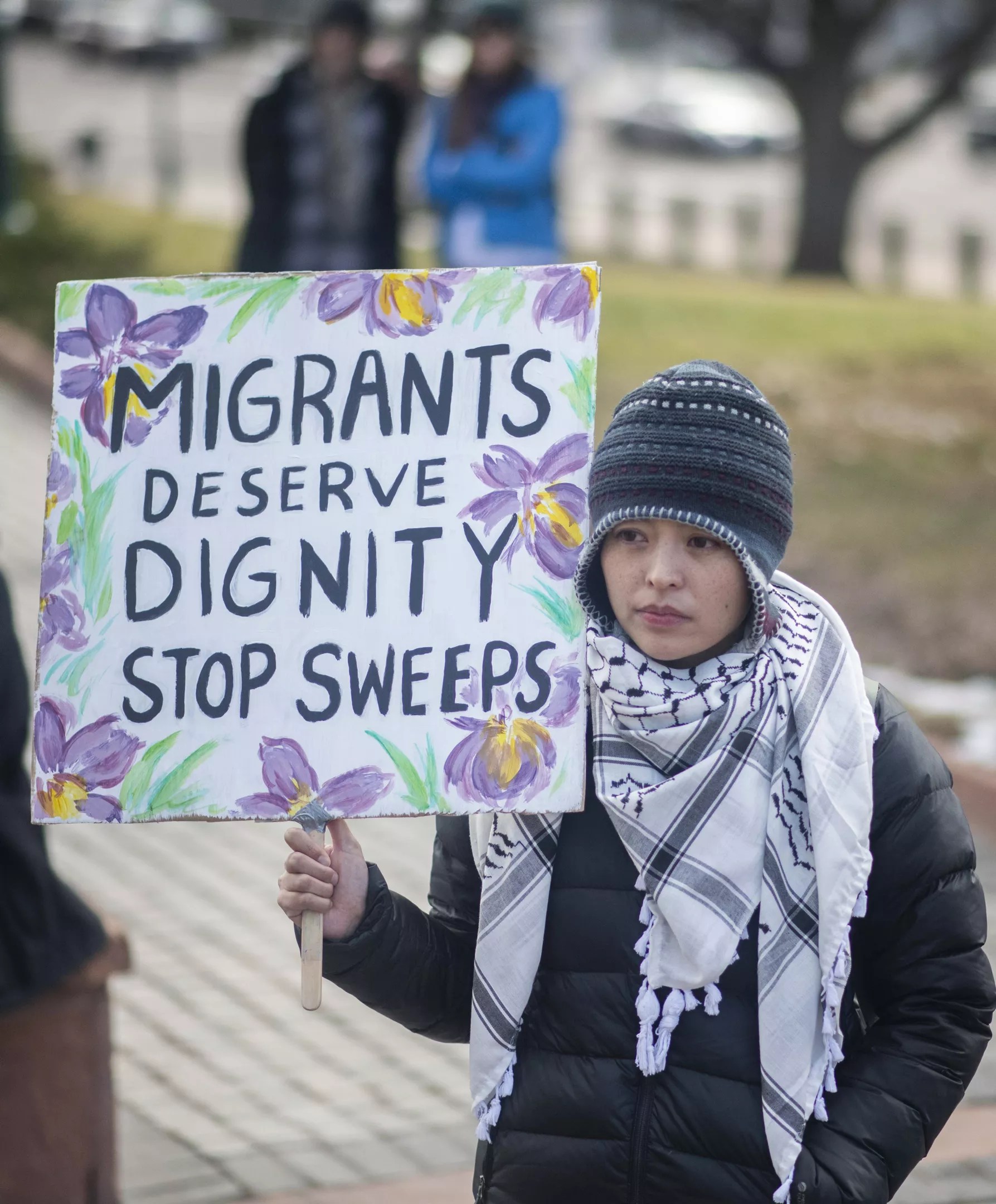 Demonstrator at the Colorado Capitol demanding better treatment of migrants.