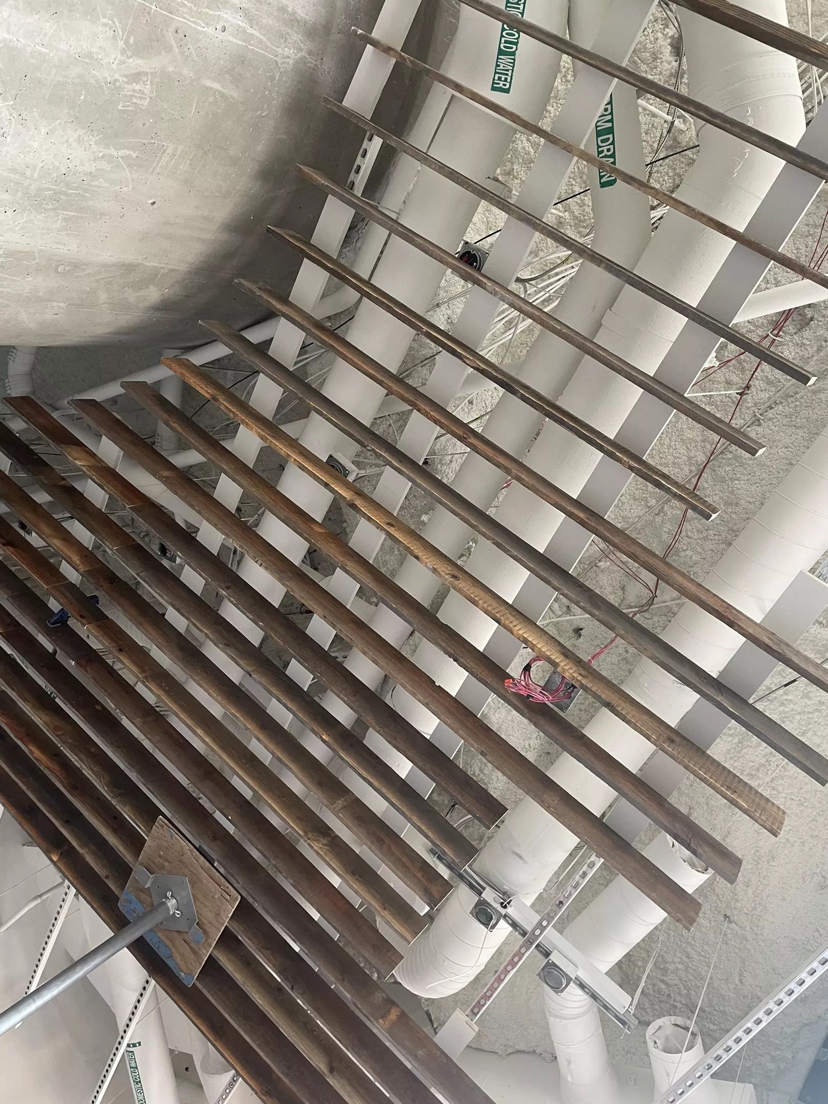 Reclaimed snow fencing lines the ceilings at the Populus.