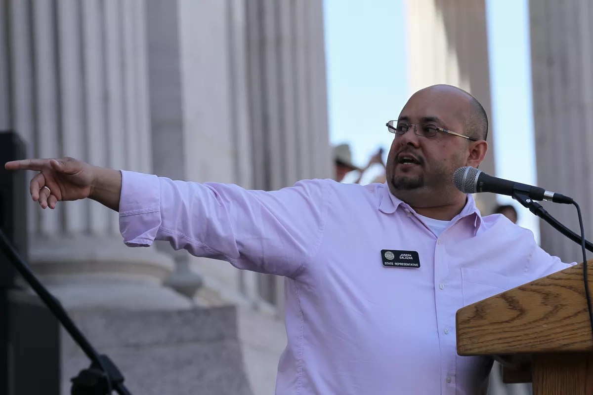 Levi Tillemann Representative Joseph Salazar speaking during an anti-Donald Trump rally in Civic Center Park on April 15. Westword Staff