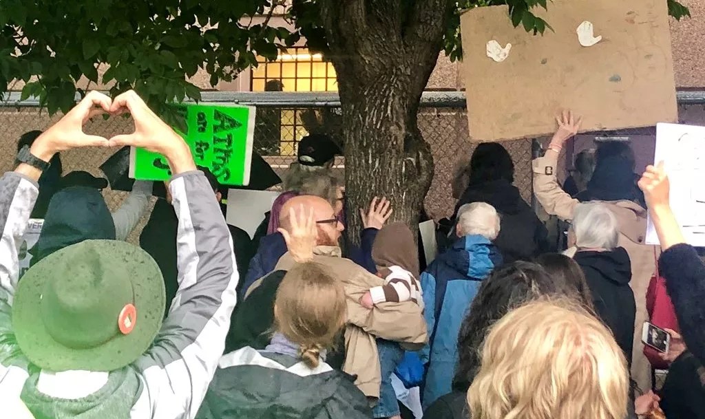 The following video documents the June 21 protest. (Note: Although an individual in the video says the facility houses children, all detainees at the facility are eighteen or older.)