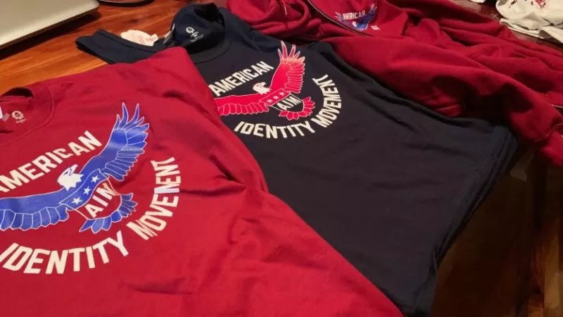 T-shirts emblazoned with the new American Identity Movement brand.