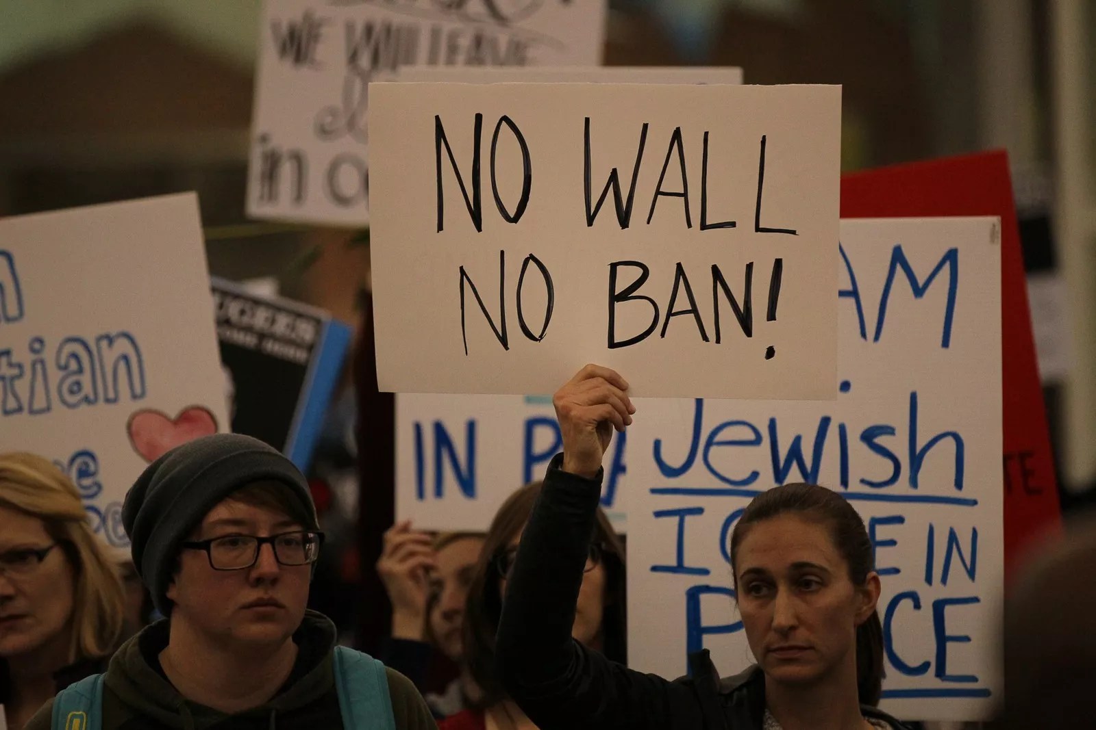 Protesters at Denver International Airport this weekend.