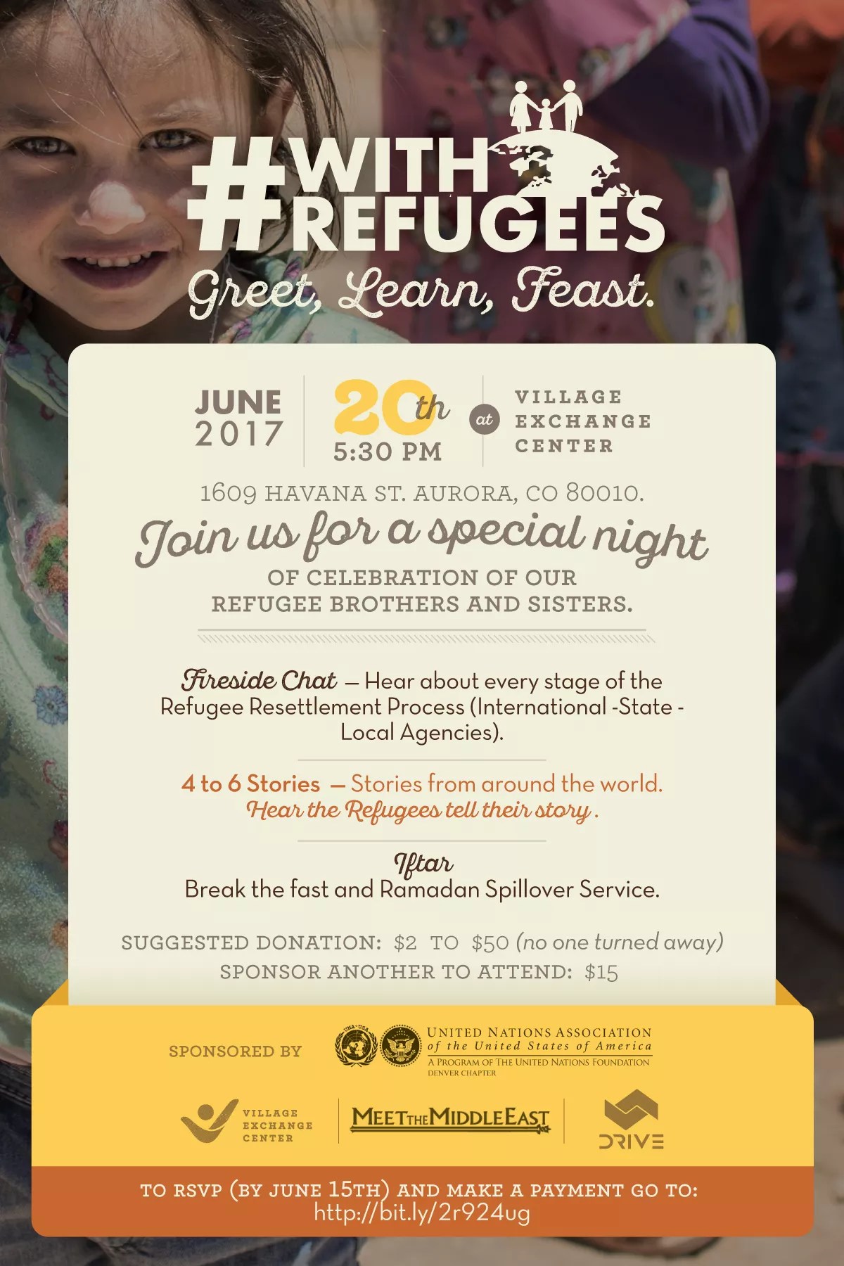 Next up for the Village Exchange Center is a fundraiser being held on June 20 in partnership with the United Nations Association of Denver, Meet the Middle East and Drive. Details can be found on the flier below: