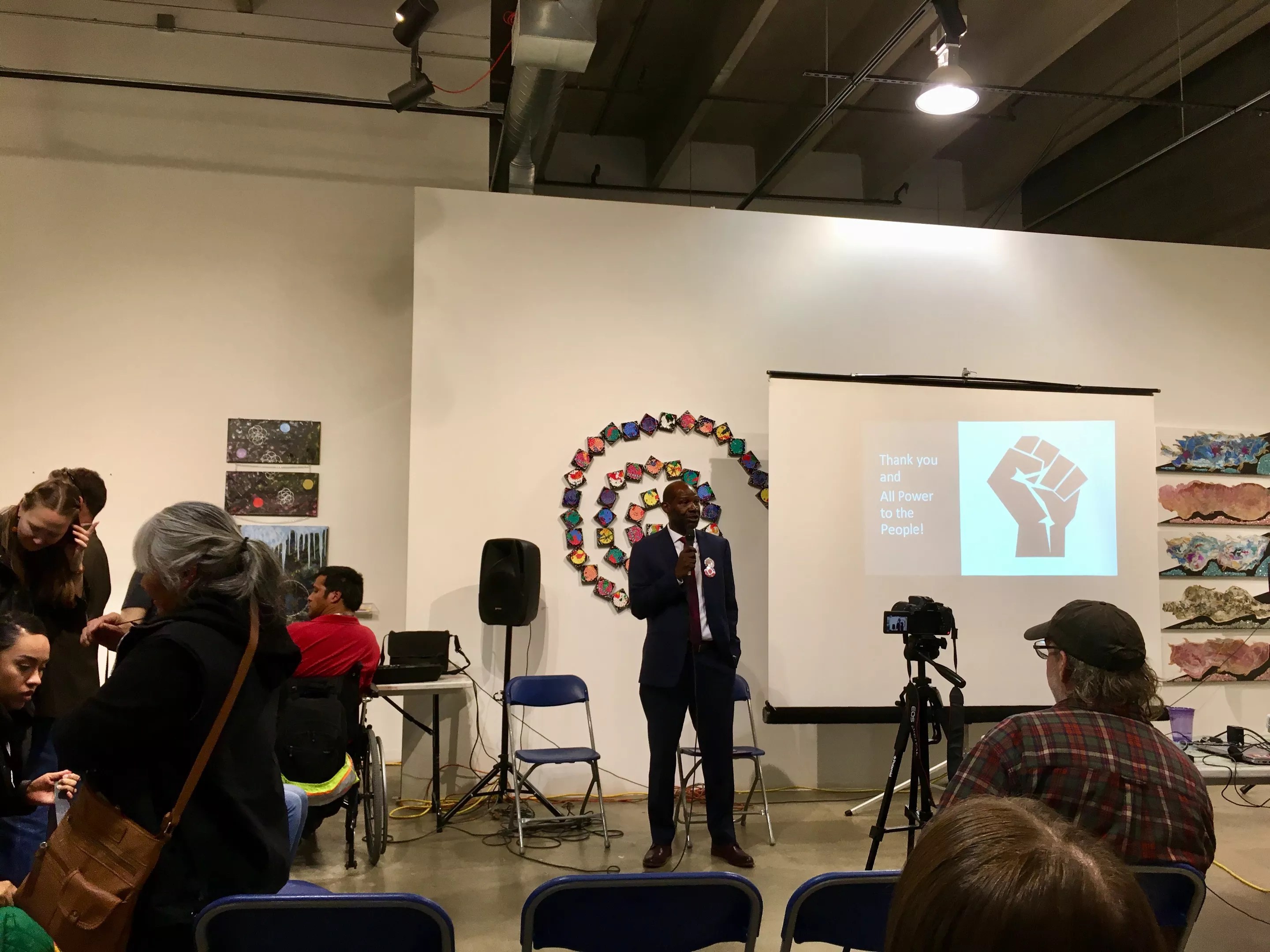 Some of the more anti-establishment candidates who are running in the May election were at the event, including mayoral hopefuls Lisa Calderón and Kalyn Heffernan, and city council candidates Candi CdeBaca and Jesse Parris.