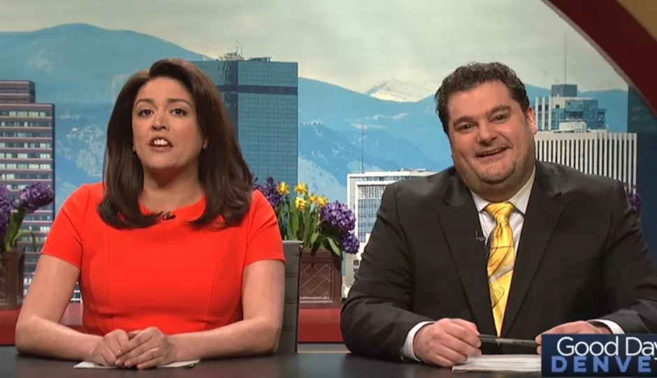 The SNL bit, on view below, kicks off with cast members Cecily Strong and Bobby Moynihan portraying Janet Loredo-Deekman and Alan “Fun Tie” Overbrook, anchors on a fictional morning-TV show called Good Day Denver. After a bit of banter, Loredo-Deekman introduces Donna Hemming and her guest, who, “cool-job alert,” works as “a professional animal pornographer.”