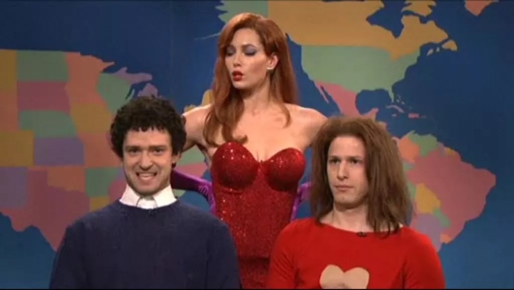 Jessica Biel as Jessica Rabbit, with husband Justin Timberlake below. Saturday Night Live