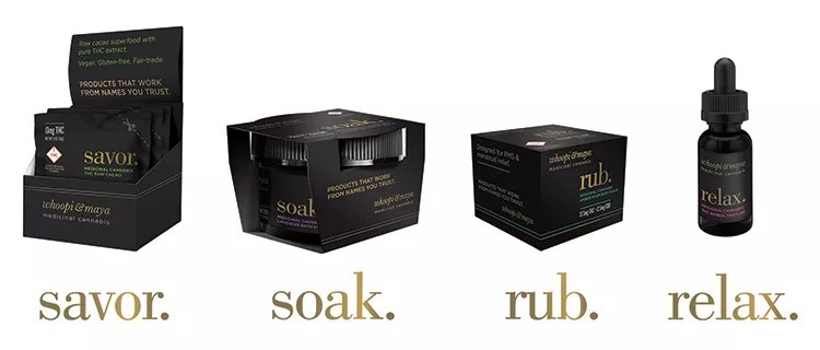 The Whoopi & Maya line includes infused cacao, tinctures, body balm and bath soak.