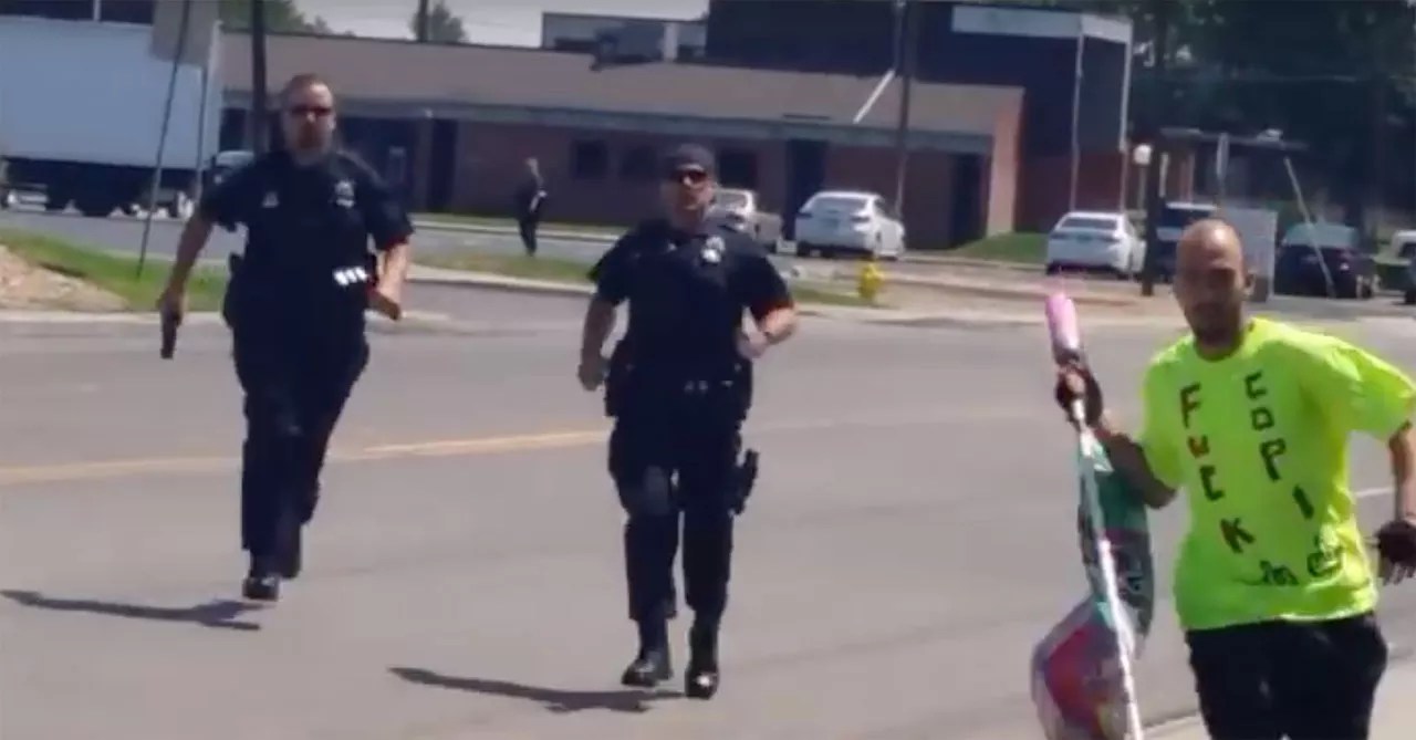 The protesters said they were on public property and exercising their First Amendment rights. Dickey insisted they were on private property. The exchange grew more heated, with one activist bellowing at the officer.