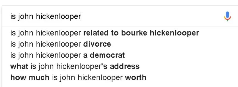 Google wants to know…if he’s related to Bourke Hickenlooper, a powerful Iowa politician who died in 1971 (he is).