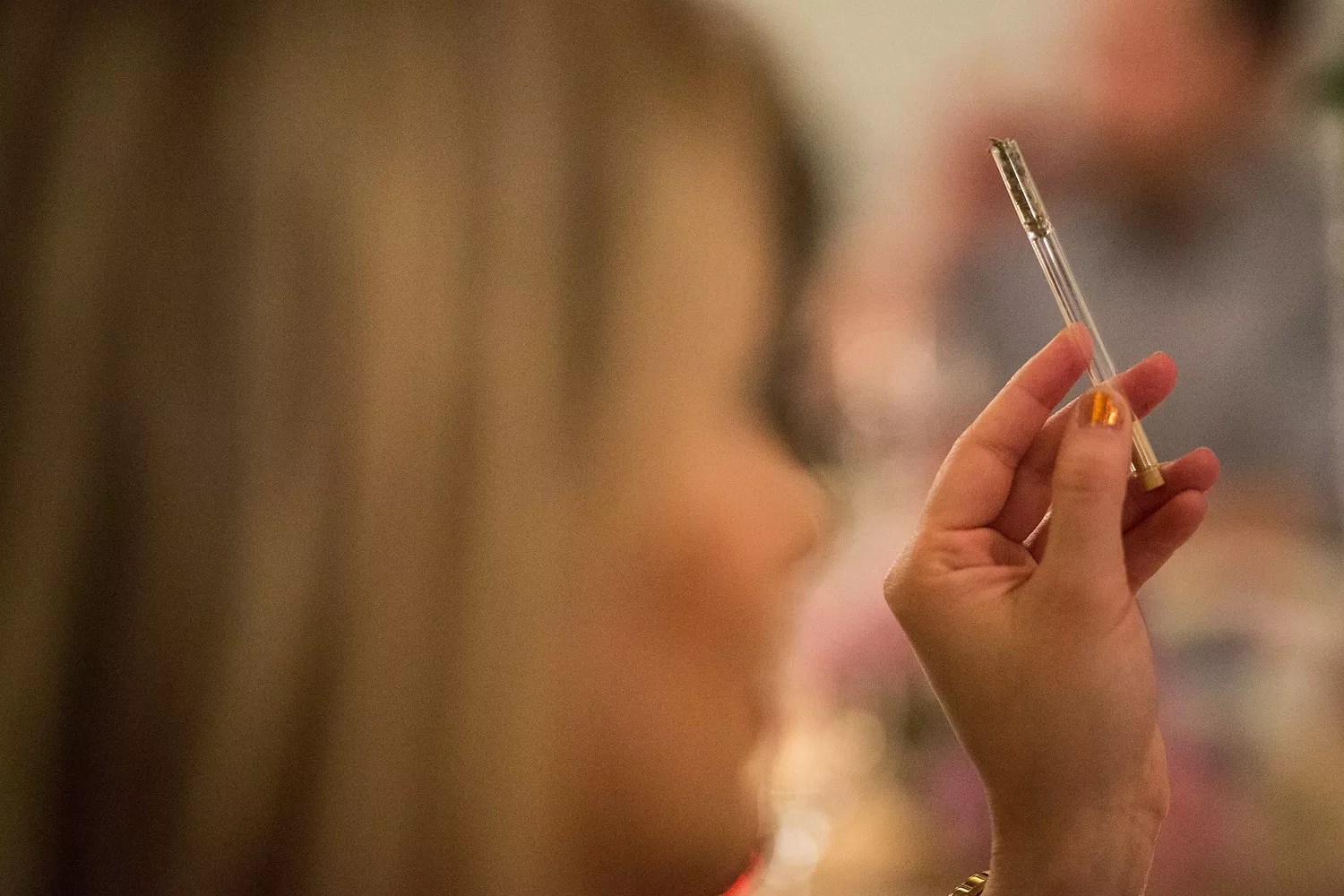 Forget paper joints that burn and leave charred butts scattered around the table. This dinner provided guests with glass joints: The burn was easier to control, the joints were easier to refill, and guests could enjoy the flower without paper sticking to their lips.