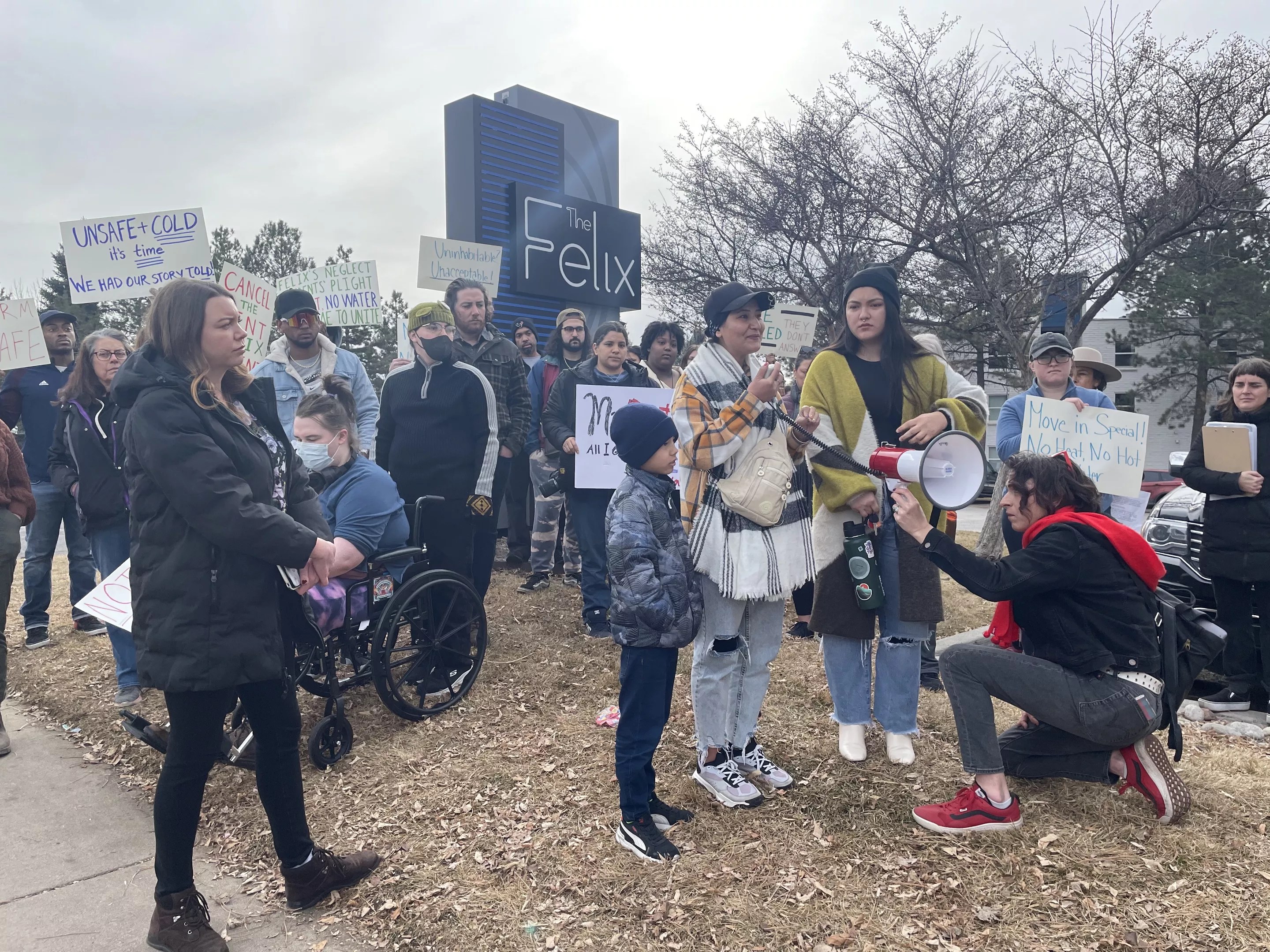 “We could literally see our breath in the morning,” tenant Jerhami Baird said at the rally. “We have repeatedly put in service orders which have been ignored, and eventually that were removed recently. The Felix apartments have been negligent in their promises that were given in our leases. We want everything fixed now. … We want our money back for the months of not getting what we paid for.”