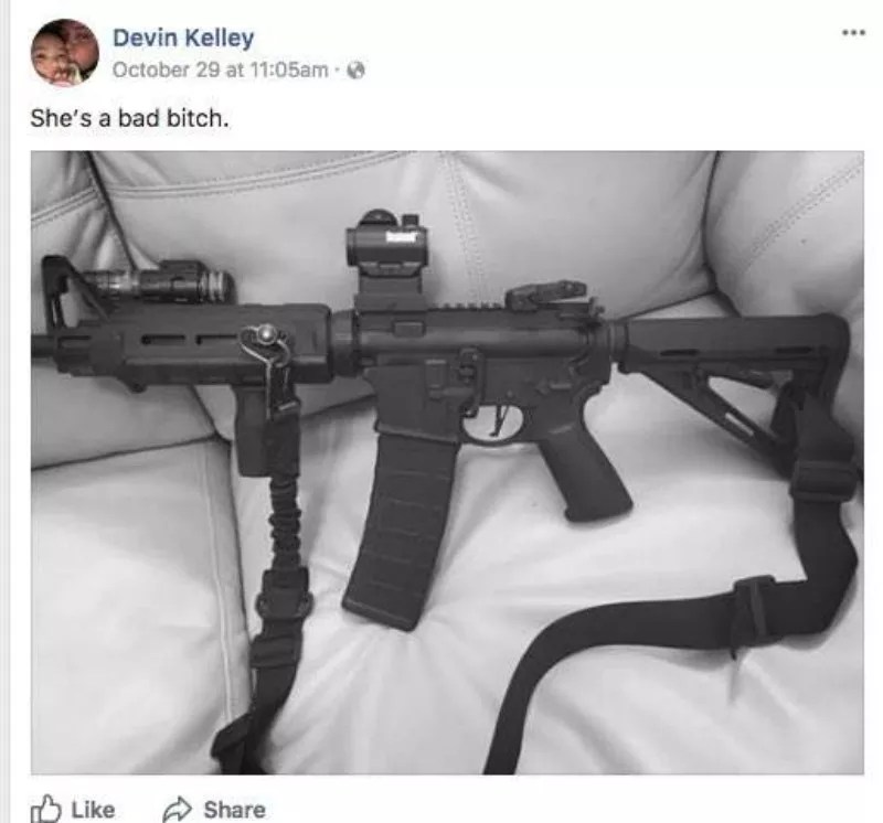 A Facebook photo of a weapon Devin Kelley described as a “bad bitch.”