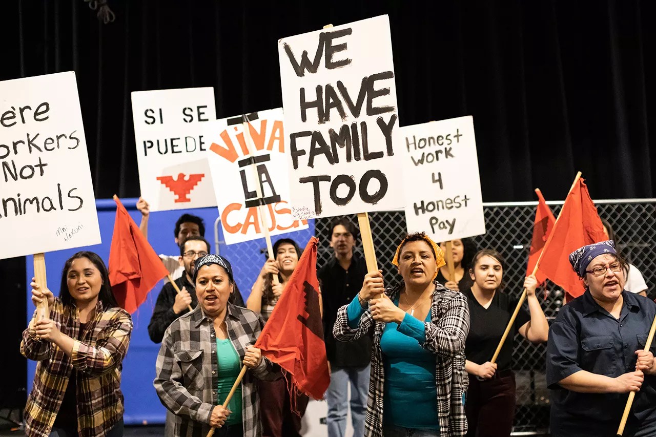 Over the decades, Su Teatro’s original productions have re-created important events of “El Movimiento,” or the Chicano Movement — a term that broadly refers to the civil-rights and cultural-empowerment movement among Mexican-Americans (and others who identify as Chicano) that began in the 1960s as a reaction to systemic racism in the United States and more than a hundred years’ worth of injustices, including land seized from Mexicans by white settlers in the West. Over time, the Chicano Movement encompassed efforts to protect farmworkers’ rights, including the United Farm Workers of César Chávez and Dolores Huerta in California, to create institutes for Chicano education, and to restore land grants in New Mexico, Texas and Colorado that were dishonored by the federal government and the states.
