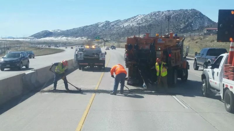 CDOT has maintenance agreements with Denver and other municipalities for fixing potholes on many routes through the city. But on the main highway system, its own crews are in charge of filling the gaps, as it were.