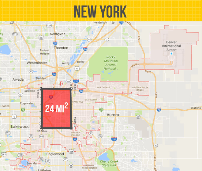 4. San Francisco If Denver were as dense as New York City, the population would only cover 24 square miles, or about 16 percent of its size. sparefoot.com