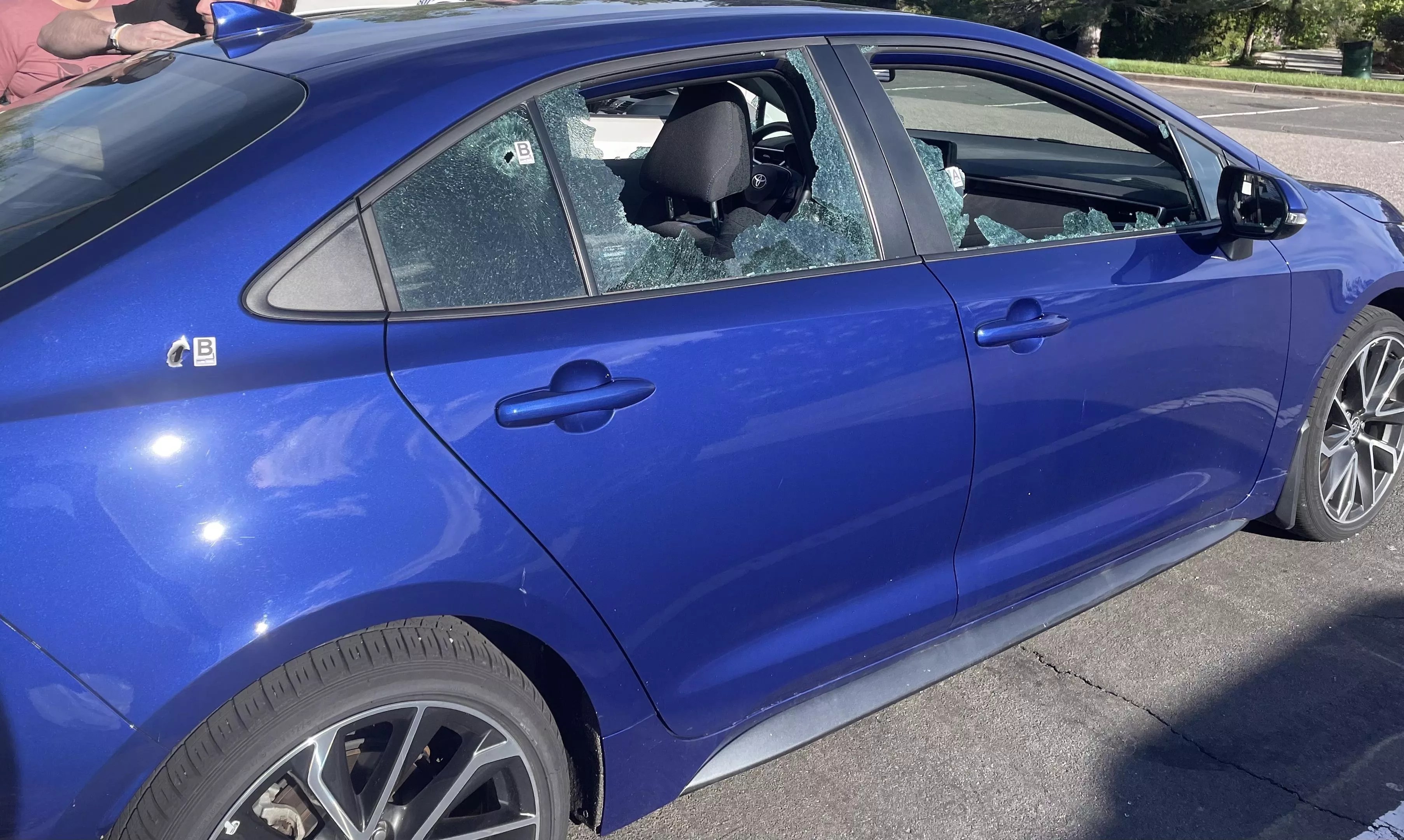 Christian, 22, bought the car himself less than two years ago. The blue Toyota Corolla was in the middle of the firefight, taking gunshots from both the suspect and police, Morton says. Three of the four side windows were shot out, and there were two bullet holes in the car’s body. Morton says estimates to fix the damage ranged from $6,500 to $17,000; after insurance coverage, they have to pay a $500 deductible.