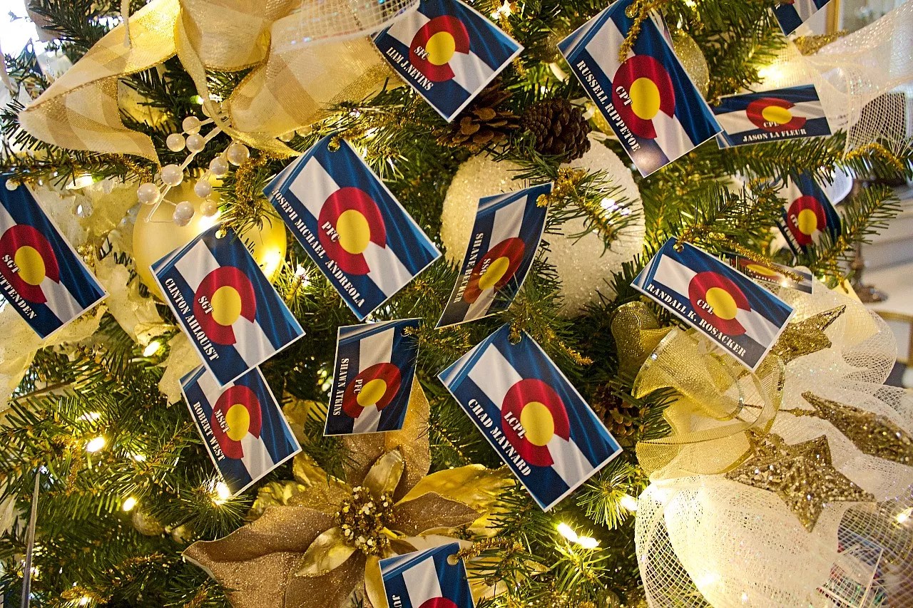 Although Polis is Colorado’s first Jewish governor, several Christmas trees are spread throughout the mansion. One holds a special meaning this year: The Gold Star tree in the drawing room is decorated with the names of over 350 Coloradans who lost their lives during military service, printed on top of the state flag.
