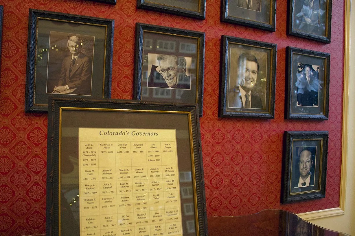 The governor’s room houses photos of every past and present Colorado governor, along with their spouses: the first ladies and Colorado’s first-ever first gentleman, Marlon Reis, Polis’s husband.
