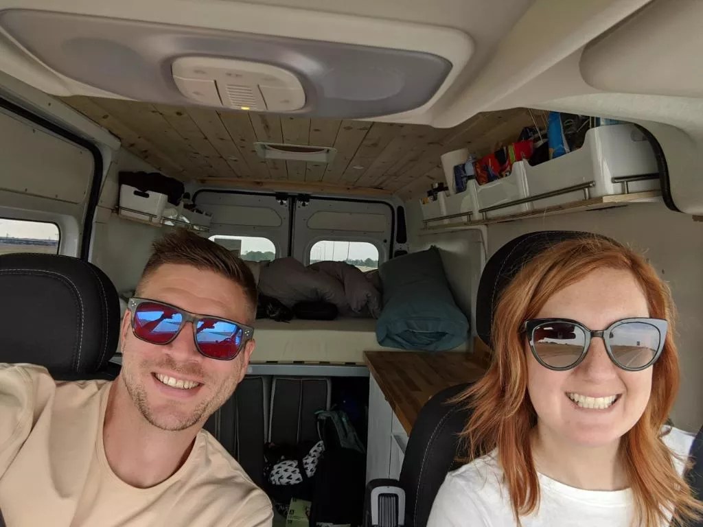 Jarom Walz and his sister inside one of the vans that’s ready to go.