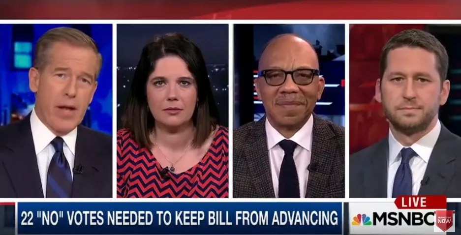 Eli Stokols, far right, with other panelists on a recent episode of MSNBC’s The 11th Hour With Brian Williams.