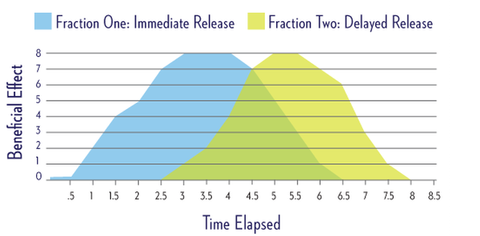 Wana’s capsules contain two oil-based compounds known as “fractions,” which bind with cannabinoids in different ways. “The first fraction is highly bio-available and provides a quick onset of the therapeutic effects, generally within twenty to thirty minutes of taking the capsule,” according to the WanaCapsXR description. “This first release of cannabinoids lasts for up to six hours. The second fraction then takes effect, releasing the remaining cannabinoids gradually for a steady, long-lasting experience.”