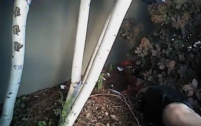 By the time Officer Dulayev’s body-worn camera begins recording, as can be seen in the video, Heard is the only person under the bush. Once the audio kicks in (during the first thirty seconds of the clip, there’s no sound because of a delay), Dulayev orders, “Crawl out. Crawl out on your hands and knees. I’ll fucking tase you.”