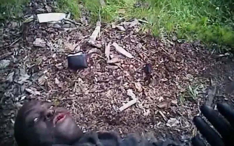 An instant later, Heard cries out and clutches his midsection before toppling face first to the dirt-covered ground in front of him.