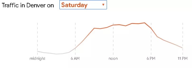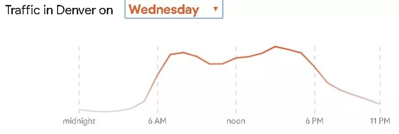 The site also provides Denver traffic graphics for each day, which show the rise and fall of roadway-clogging volume.