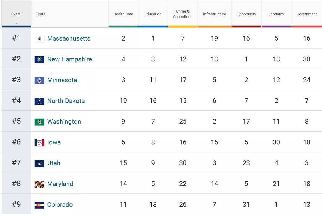 Continue to see Colorado’s U.S. News & World Report rankings for Opportunity, Economy and Government, plus the list of the top nine states overall.
