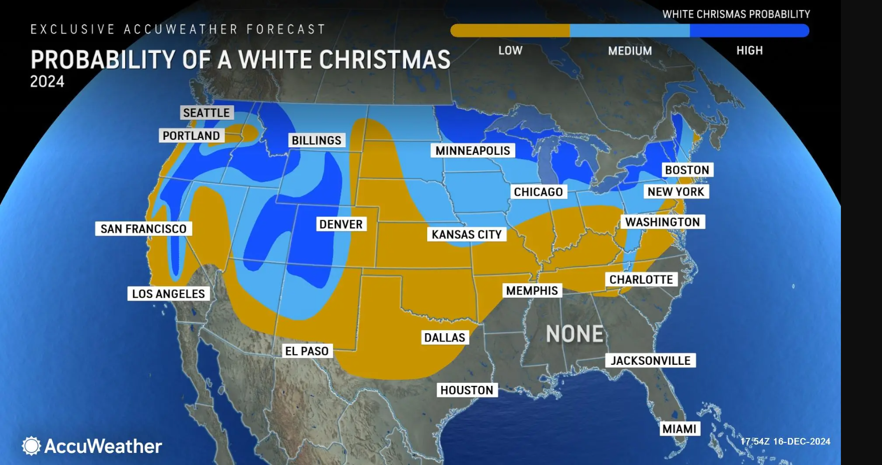 According to a forecast by AccuWeather, Denver has a medium chance of a white Christmas, which is relatively good news, considering that much of the country has a low chance or no chance at all.