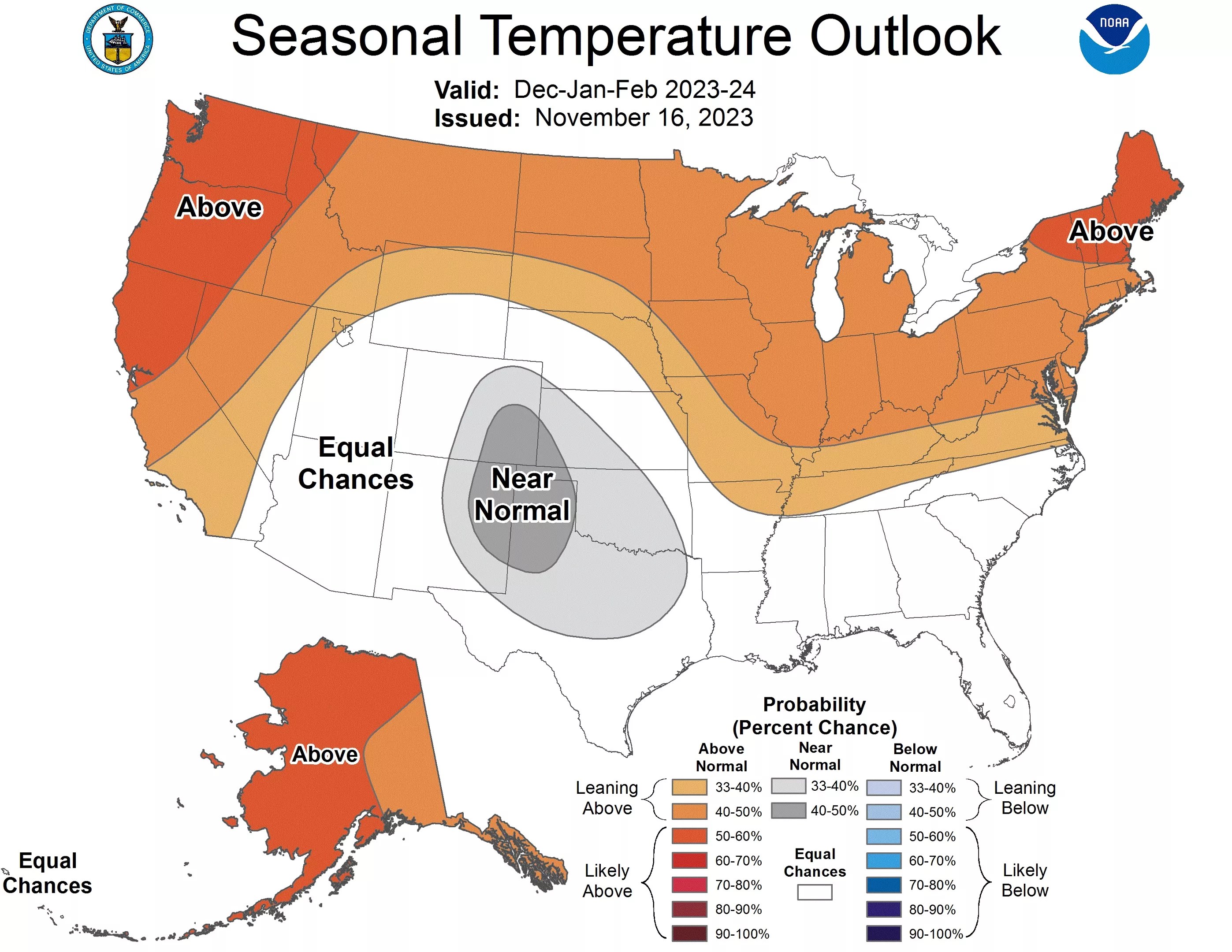 Late in 2023, the National Oceanic and Atmospheric Administration (NOAA) Climate Prediction Center released its outlook for December, January and February, predicting that precipitation across the Centennial State would be slightly above normal and that temperatures had an equal chance of being above or below normal in the western part of the state, and likely near normal in the eastern half.