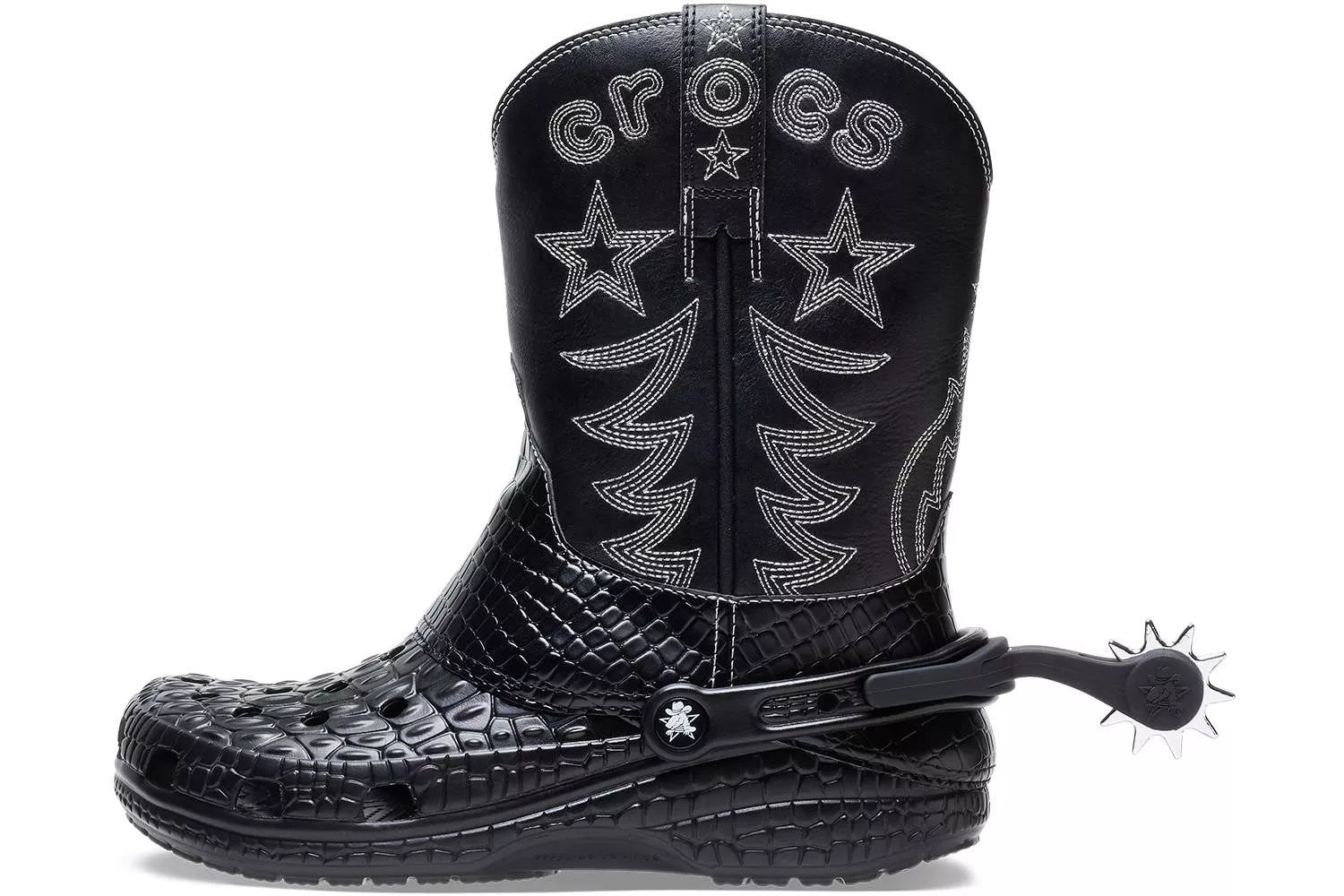 The Colorado company just announced that the $120 horrors will be available on Croc Day, October 23. “Our Classic Crocs Cowboy Boot was made for our fans and inspired by our fans’ creativity,” Crocs says. “This limited-edition Croctober boot features a signature Crocskin texture, metallic disco desert embroidery details, and a spinning spur on the back so you can really kick up some dirt. Plus, each pair includes a Croc Starâ„¢ Jibbitzâ„¢ charm, 2023 Cowboy Duke Jibbitzâ„¢ charm, and plenty of room to add your own personalization.”