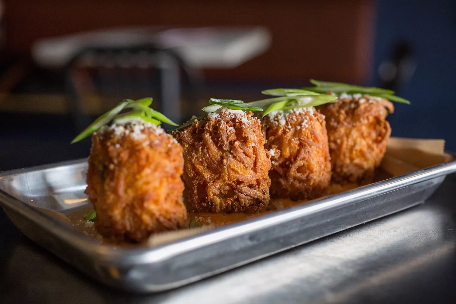 The team brought on couple Jason Bray and Amy Crowfoot, who own the J Street food truck, to provide food to match the bar program. “Jason is pretty talented; we had talked to a few well-known chefs, and then we met them and loved them as people before we loved them as chefs,” says Kenyon. “He was a chef that needed brick-and-mortar, and we could give him that.” J Street’s grown-up tater tots. Danielle Lirette