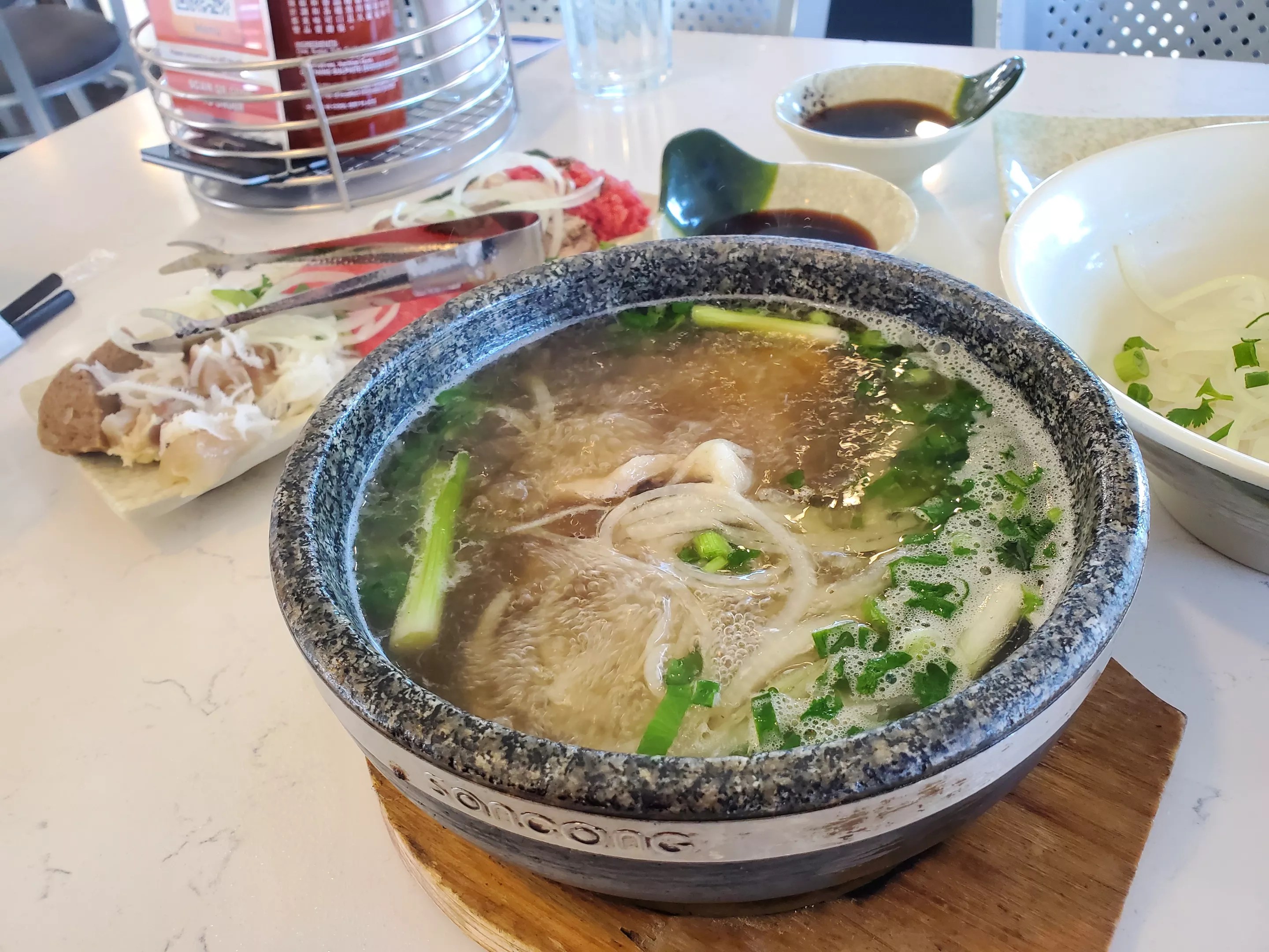 Pho in a hot stone bowl at Now Pho.
