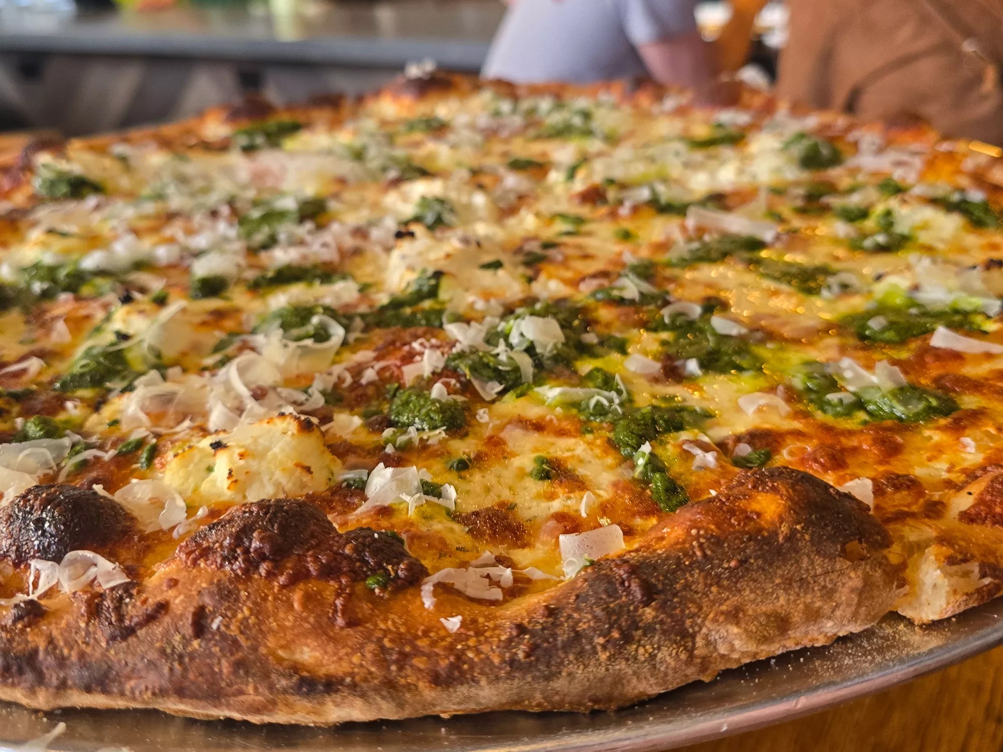 A white pie with pesto from Little Arthur’s.