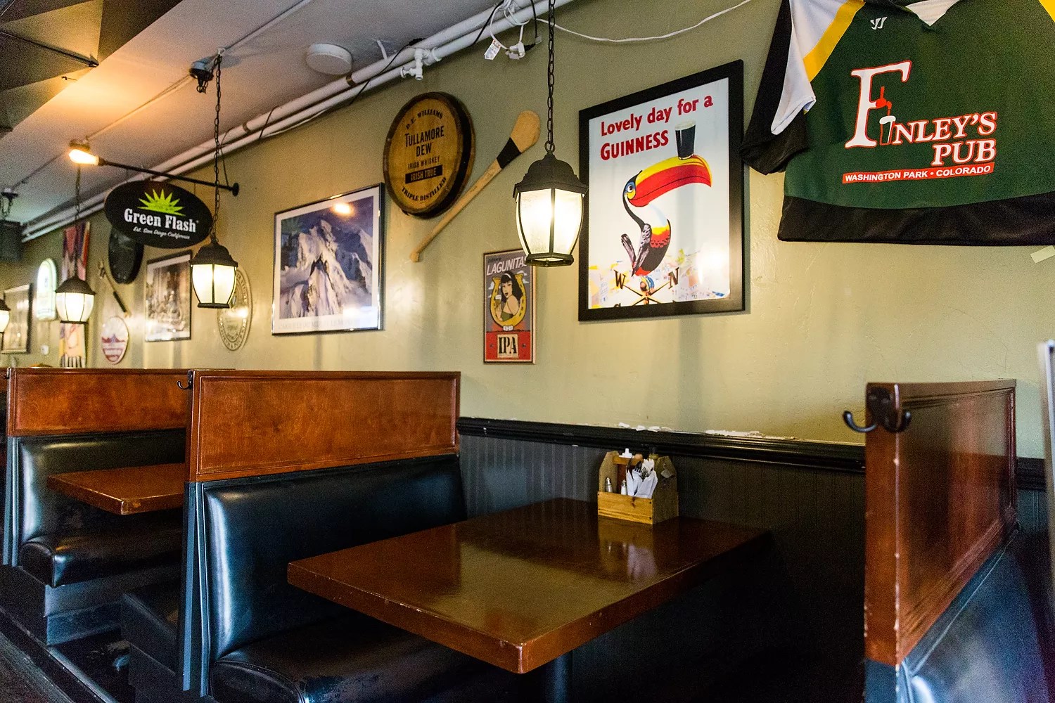 Finley’s boasts the obligatory dark-wood booths of any Irish pub worth its Guinness.