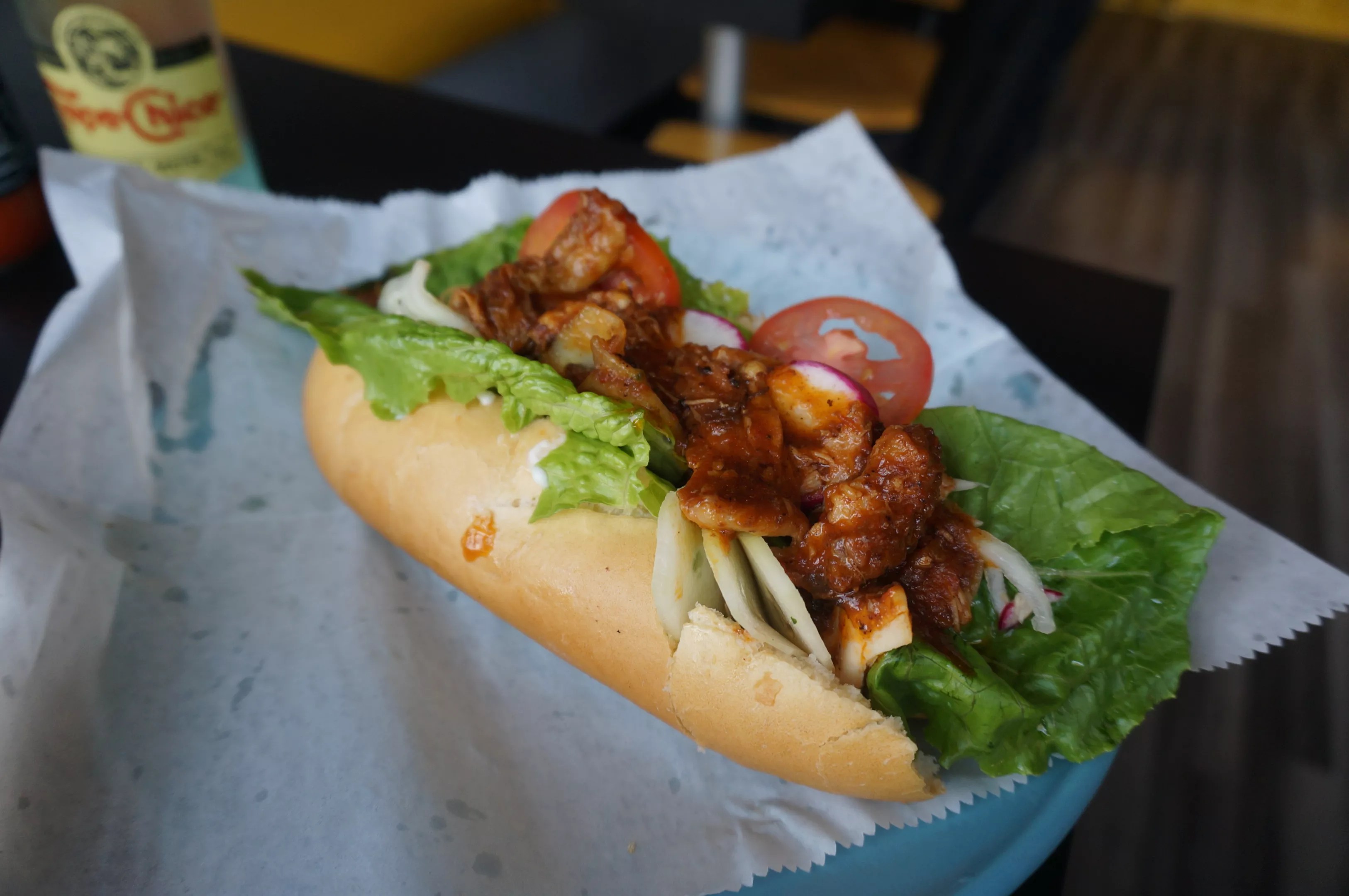 El Tazumal’s chicken criollo sandwich.